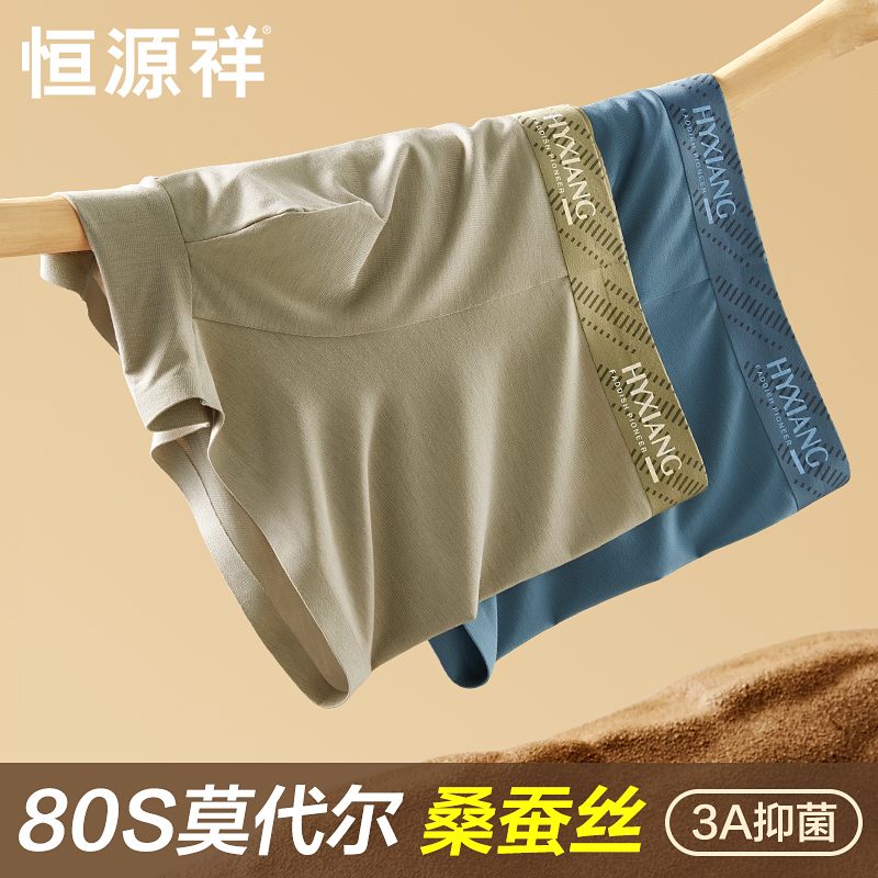 【产品名称:恒源祥莫代尔无痕男士内裤男蚕丝抗菌裆平角裤薄款男生四角短裤头】