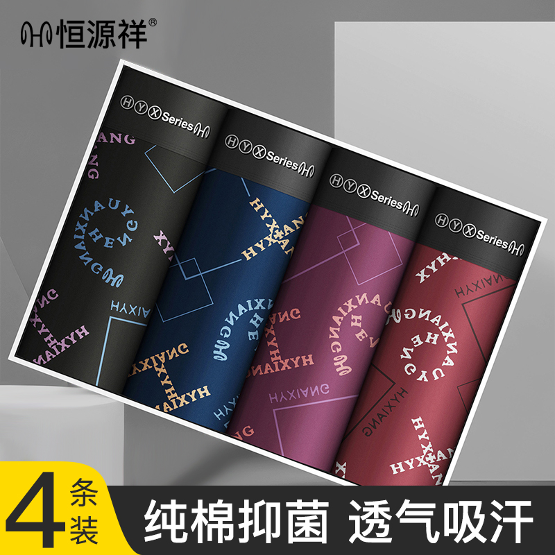 【产品名称:恒源祥男款纯棉抑菌内裤2023年新款青少年时尚大码透气男四角裤衩】