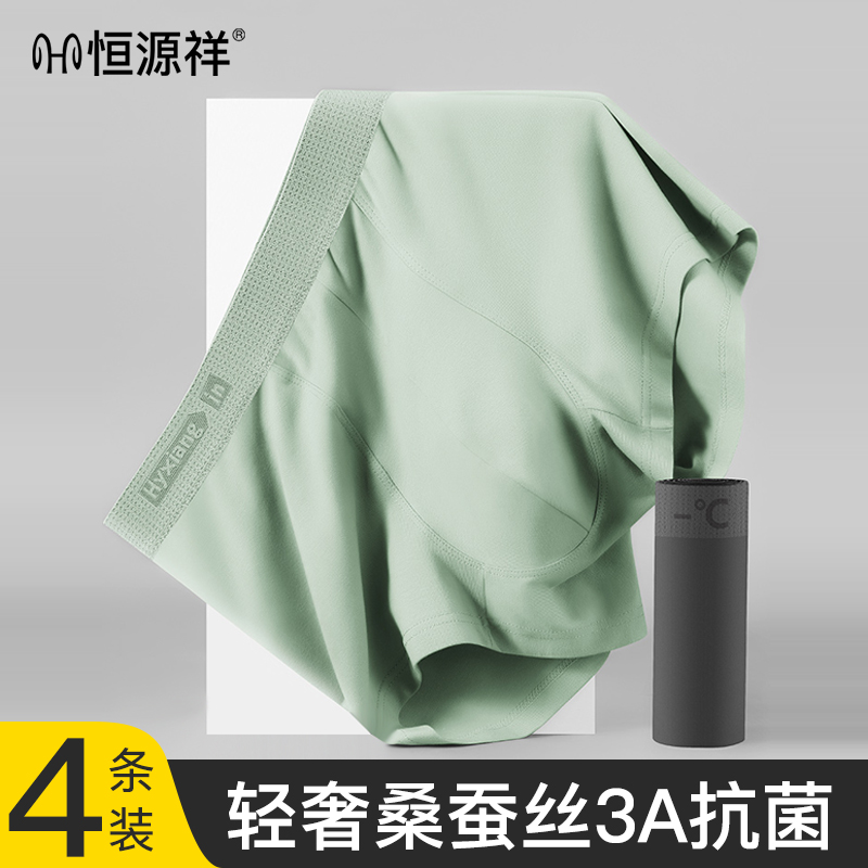【产品名称:恒源祥纯棉男士内裤2023年新款桑蚕丝抗菌内档透气吸汗大码平角裤】