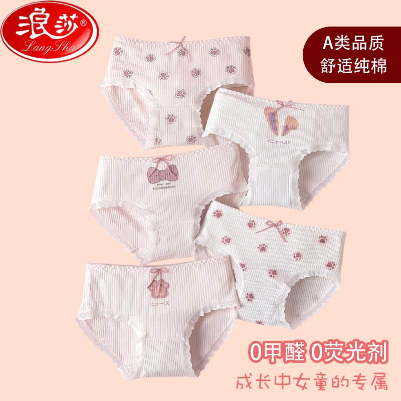 【产品名称:浪莎少女内裤三角裤女纯棉日系可爱公主女童全棉三角裤女孩大童装】