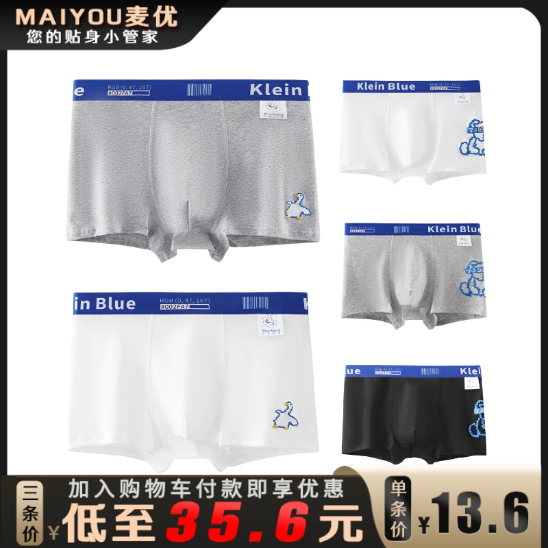 【产品名称:男士内裤撞色中腰纯棉抗菌印花卡通3D立体发泡工艺青年四角裤包邮】