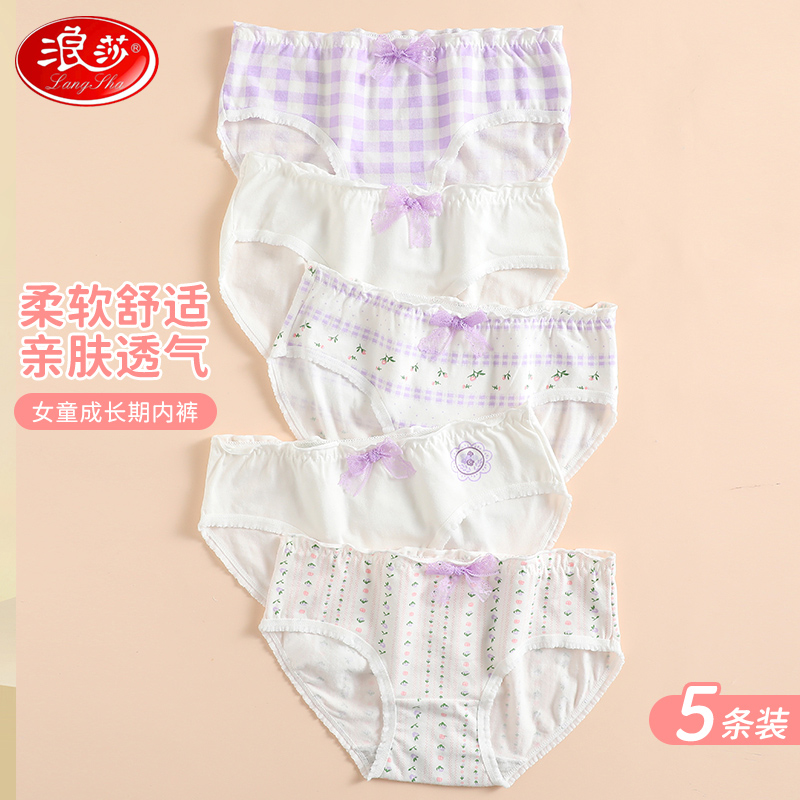 【产品名称:浪莎12周岁以上青春期少女成长内裤儿童纯棉三角短裤女童平角内裤】