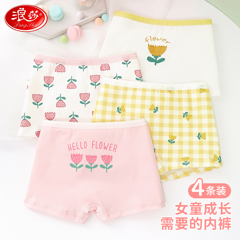 【产品名称:浪莎儿童100%纯棉内裤女童透气四角底裤宝宝不夹屁屁女孩平角短裤】