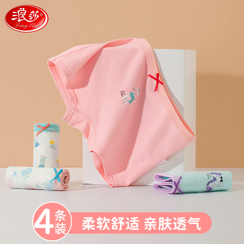 【产品名称:浪莎儿童内裤女童100%纯棉平角底裤小女孩亲肤四角短裤宝宝不夹PP】