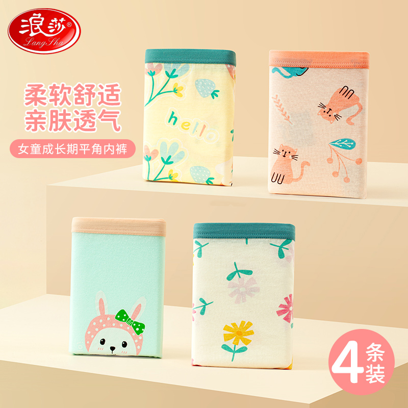 【产品名称:浪莎儿童内裤女童100%纯棉平角裤宝宝亲肤透气卡通四角短裤不夹PP】