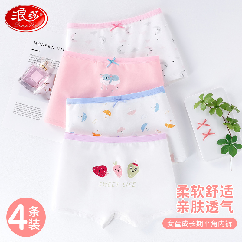 【产品名称:浪莎儿童纯棉平角内裤女宝宝不夹屁屁四角裤中大童亲肤透气短裤】