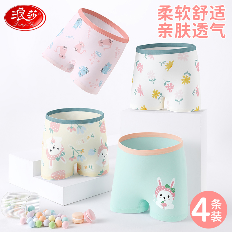 【产品名称:浪莎儿童内裤女童100%纯棉底裤小女孩透气四角平角短裤宝宝不夹pp】