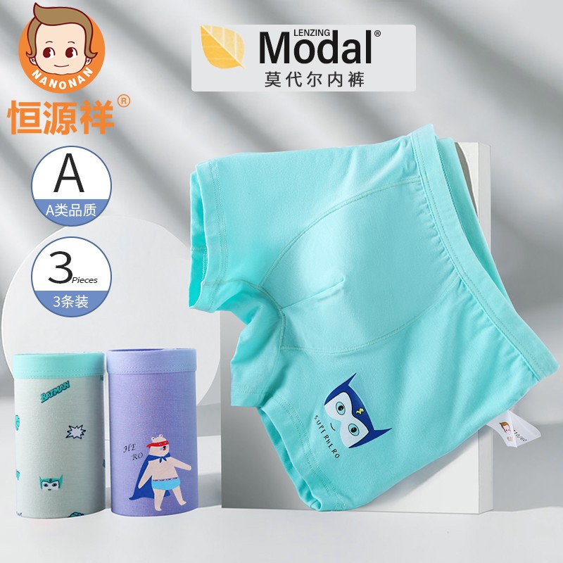 【产品名称:儿童莫代尔内裤男童冰丝平角短裤夏季中大童四角内裤3条盒装裤头】