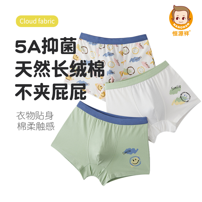 【产品名称:恒源祥儿童内裤男童平角裤中大童棉A类无痕四角裤中大童宝宝短裤】