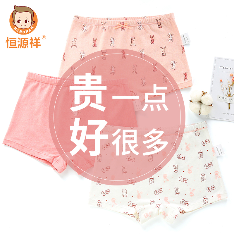 【产品名称:恒源祥儿童内裤平角裤A类全棉四角裤女孩3-15岁宝宝中大童抑菌裤】