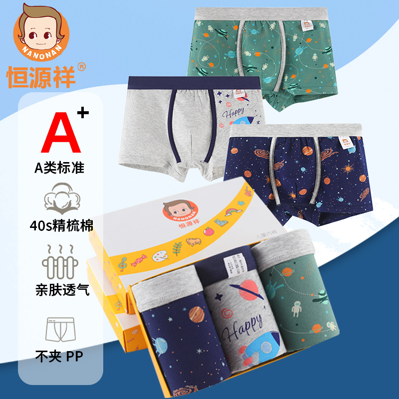 【产品名称:恒源祥内裤男儿童纯棉平角裤学生中大童短裤青少年全棉四角裤10岁】