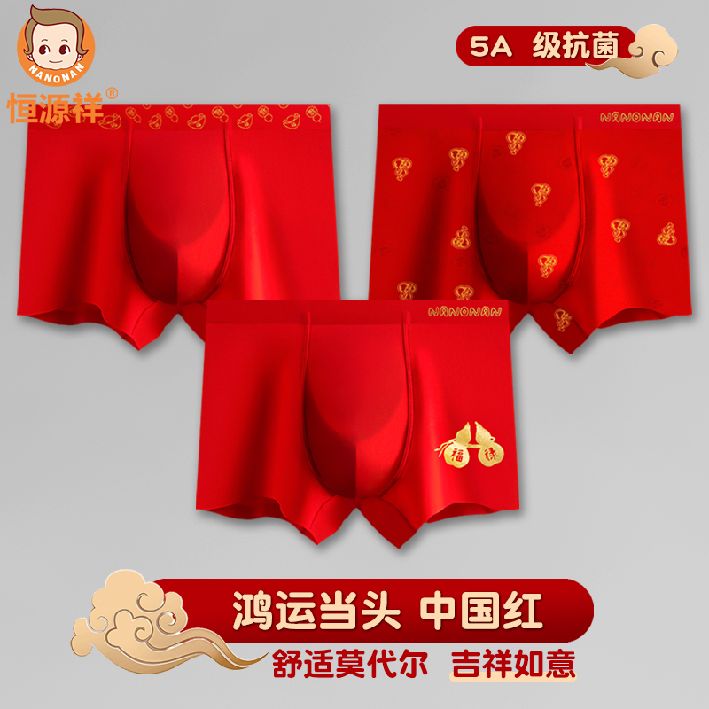 【产品名称:恒源祥儿童红内裤男童莫代尔棉平角裤12岁本命年鸿运新年平角短裤】