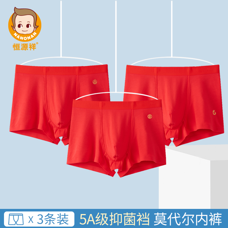 【产品名称:恒源祥男童内裤大红色莫代尔棉四角裤12岁本命年裤衩儿童平角内裤】