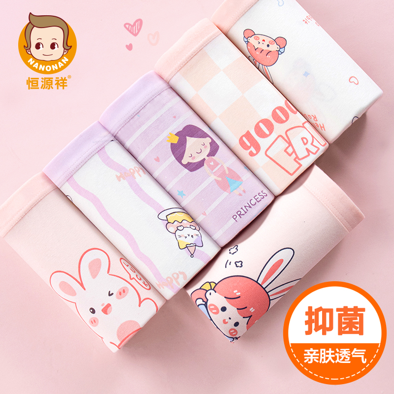 【产品名称:恒源祥女童内裤儿童女宝宝小女孩卡通四角纯棉平角短裤抗菌不夹pp】