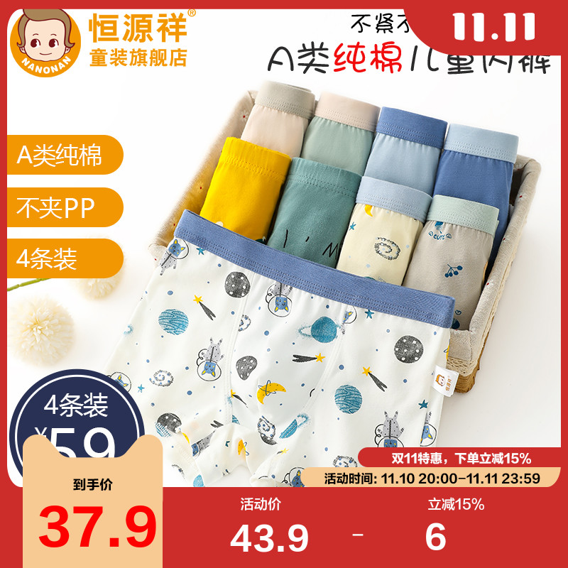 【产品名称:恒源祥男童内裤四角纯棉四季小女童平角裤中大童短裤儿童底裤抗菌】