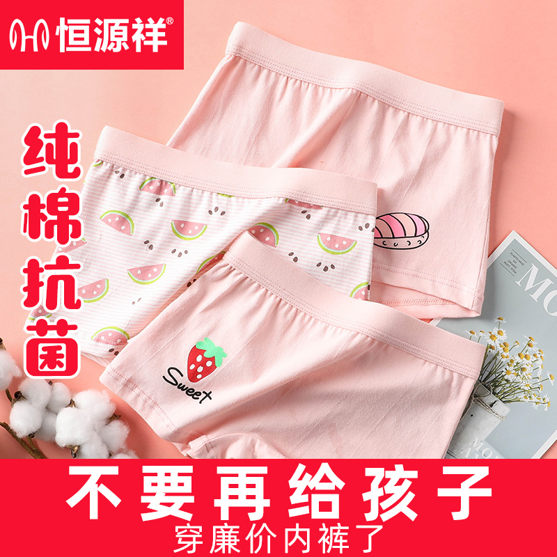 【产品名称:恒源祥女童内裤儿童纯棉四角不夹pp全棉宝宝大童小女孩平角短裤夏】