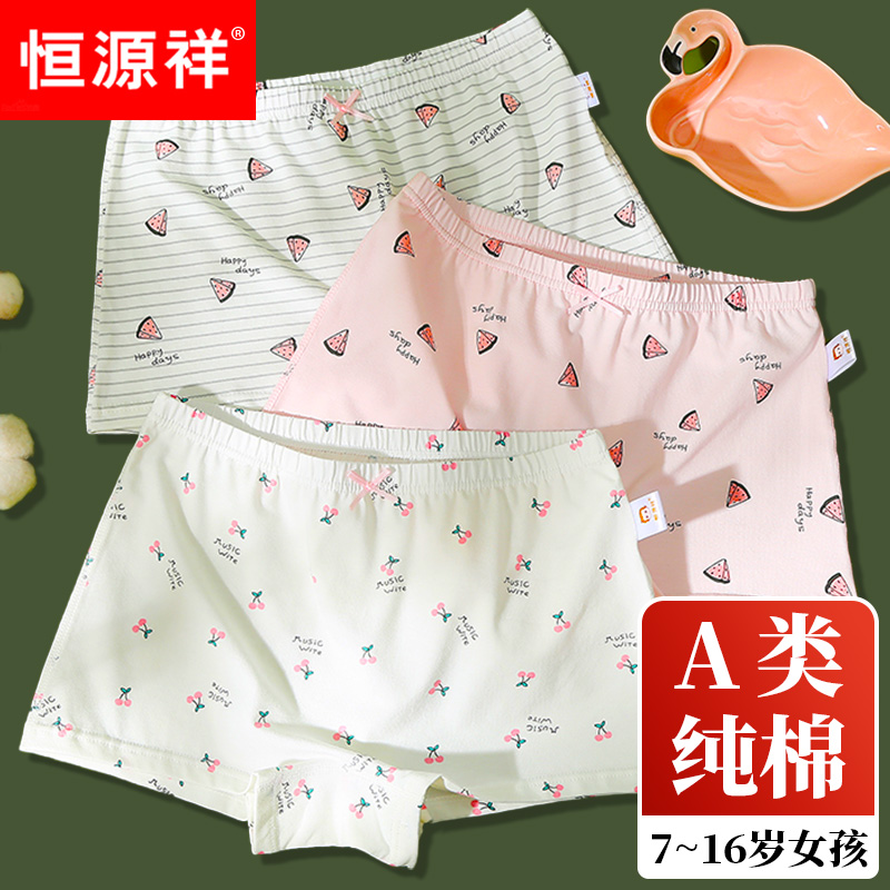 【产品名称:青春期少女内裤发育期初中生小学生女童纯棉十岁胖童平角四角短裤】