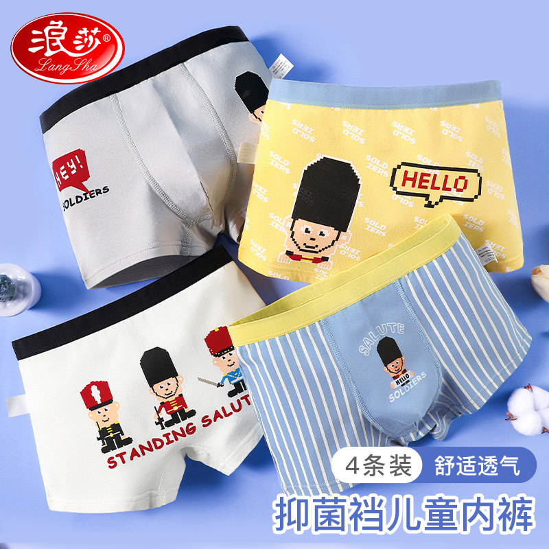 【产品名称:浪莎儿童内裤男童纯棉春秋薄款平角短裤中大童全棉抑菌内档四角裤】