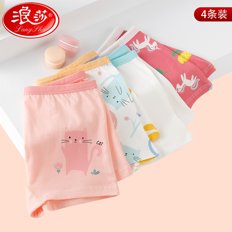 【产品名称:浪莎儿童内裤秋冬款女孩纯棉可爱卡通平角短裤宝宝不加屁屁三角裤】