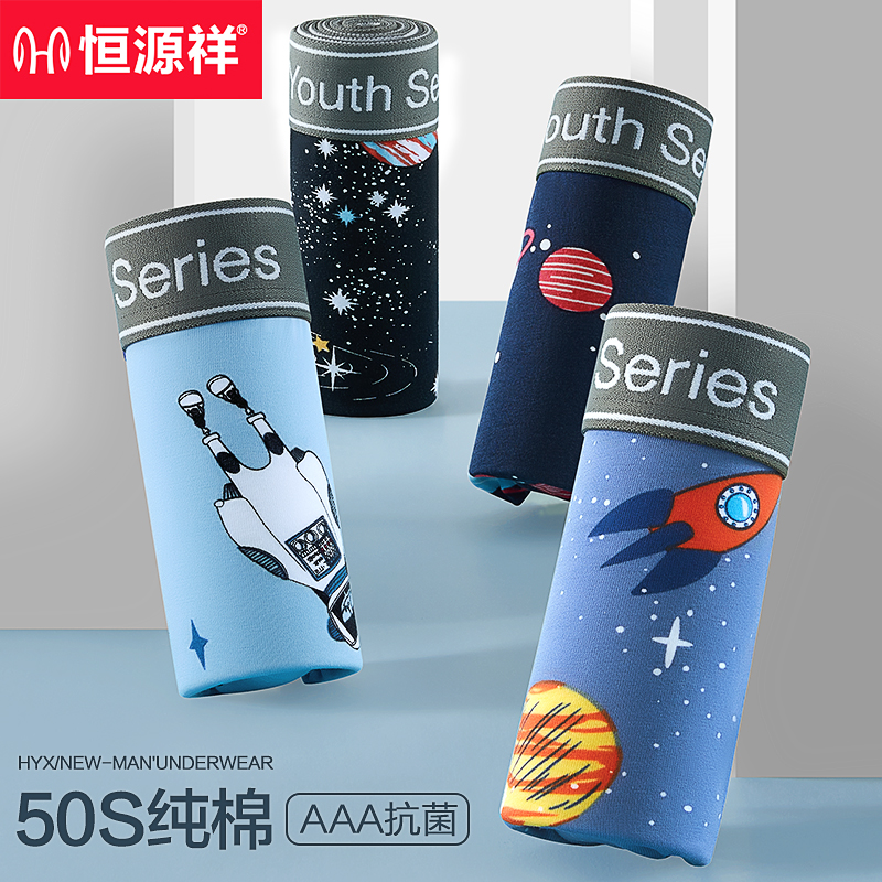 【产品名称:恒源祥青少年内裤男发育期初中学生男孩平角纯棉抗菌大童四角短裤】