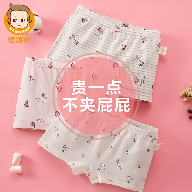 【产品名称:恒源祥儿童内裤女童纯棉平角不夹pp全棉宝宝大童小女孩四角短裤夏】