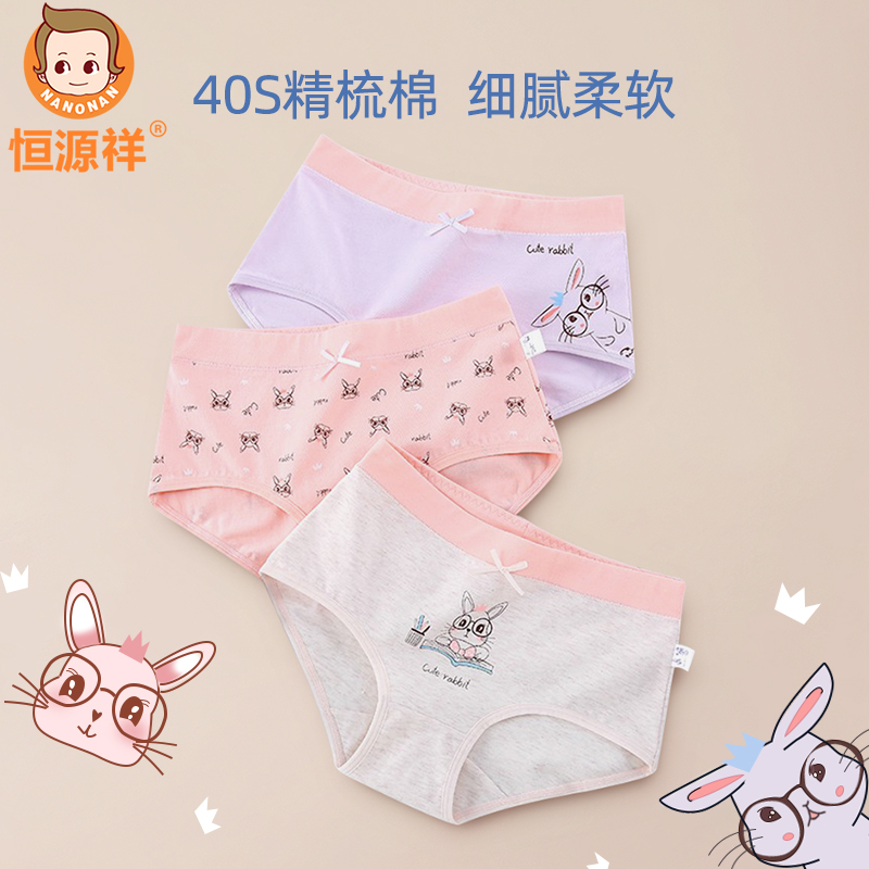 【产品名称:恒源祥儿童内裤纯棉女童宝宝平角裤四角裤头中大童12周岁小孩短裤】