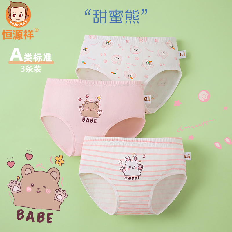 【产品名称:恒源祥儿童内裤纯棉女童宝宝三角裤全棉中大童12周岁小女孩短裤头】