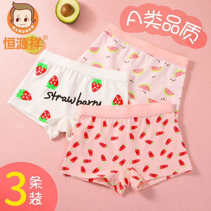 恒源祥儿童内裤纯棉女童宝宝平角四角裤头中大童夏季薄款小孩短裤