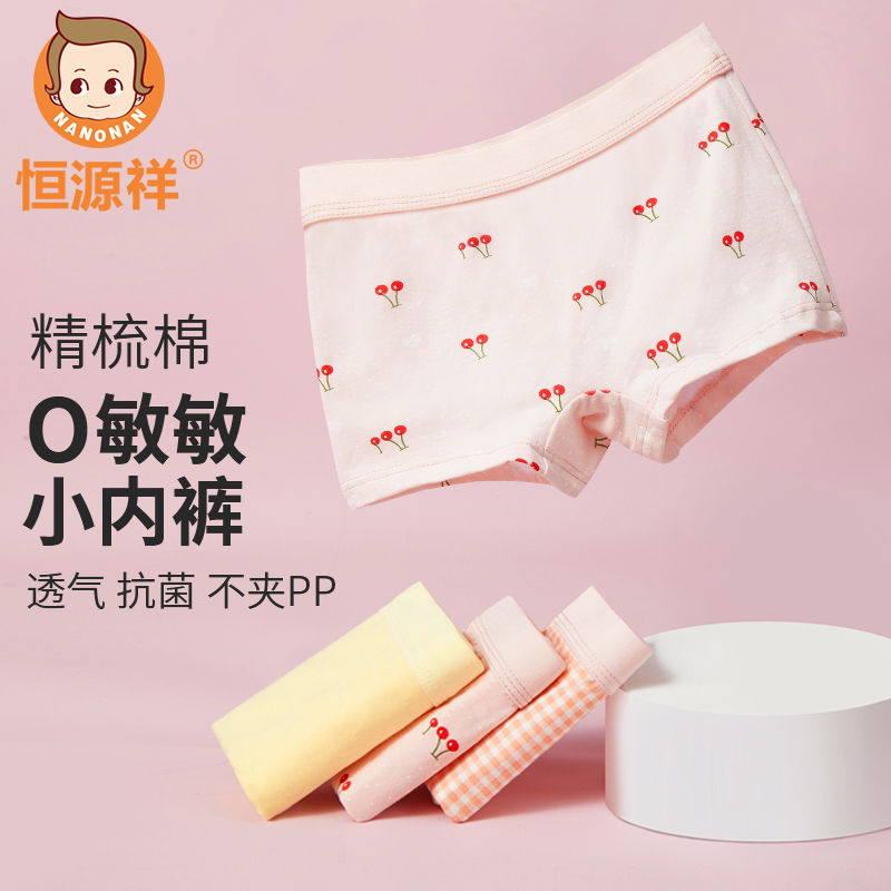 恒源祥儿童内裤纯棉女童宝宝平角四角裤头中大童夏季薄款小孩短裤