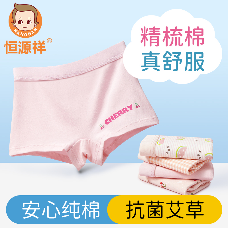 恒源祥儿童内裤纯棉女童宝宝平角四角裤头中大童夏季薄款小孩短裤