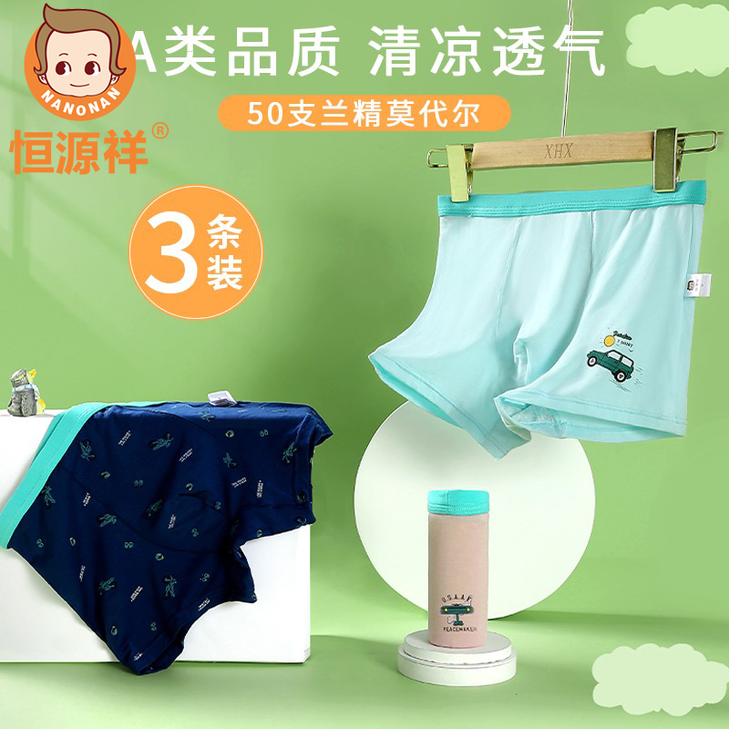 【产品名称:恒源祥A类儿童内裤莫代尔男童平角夏季凉爽青少年四角短裤中大童】