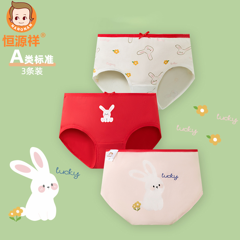 【产品名称:恒源祥儿童内裤本命年红色纯棉女童平角裤中大童女孩短裤头四角裤】