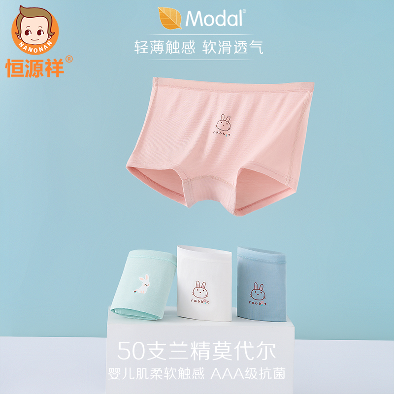 【产品名称:恒源祥儿童内裤莫代尔女童宝宝平角裤不夹PP中大童小女孩四角短裤】