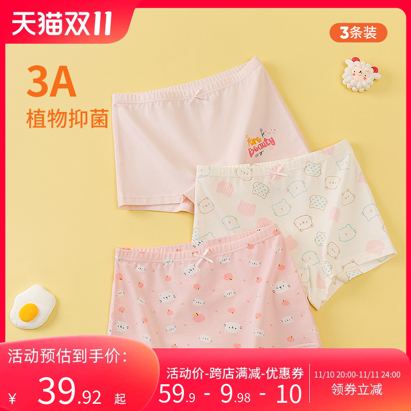 【产品名称:宜而爽儿童纯棉内裤 男女宝宝中大童可爱四角裤抑菌平角内裤3条装】