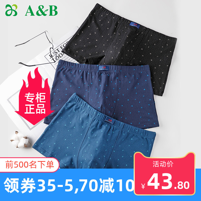 【产品名称:AB男士平角裤四角裤裤头宽松95%棉中腰透气吸湿运动内裤2条装Y503】
