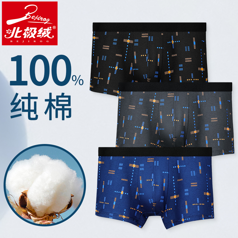 【产品名称:北极绒男士内裤纯棉质平角裤透气印花夏季薄大码短裤衩全棉四角裤】