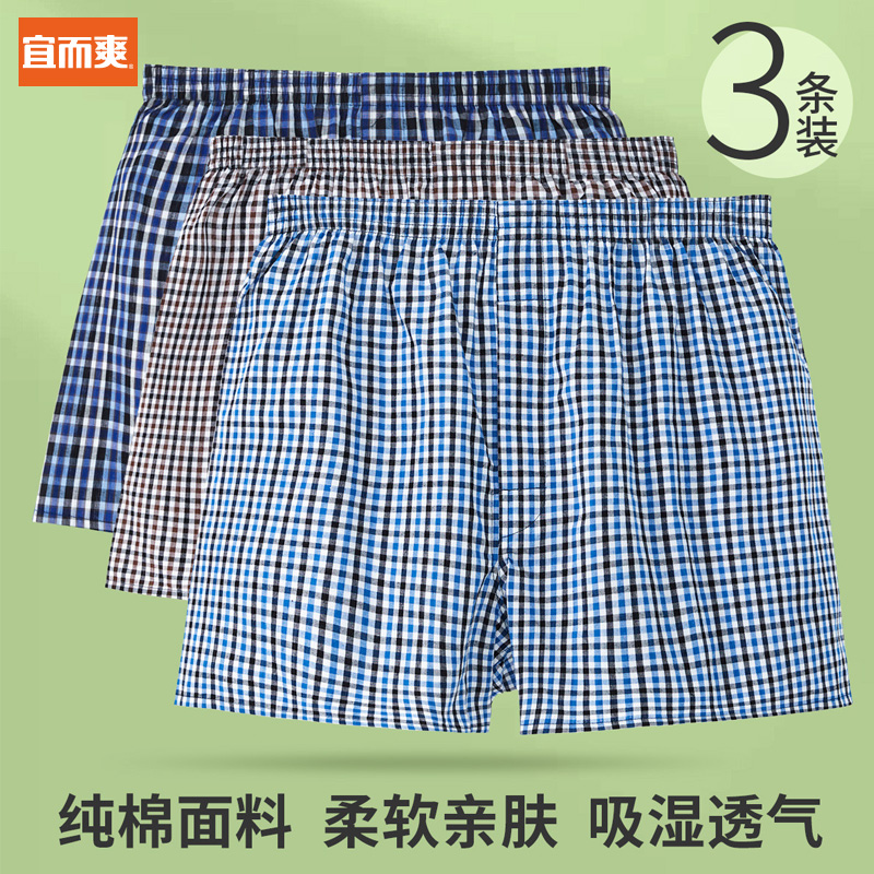 【产品名称:宜而爽阿罗裤男全棉中腰大码宽松肥佬内裤纯棉平角裤家居睡裤短裤】