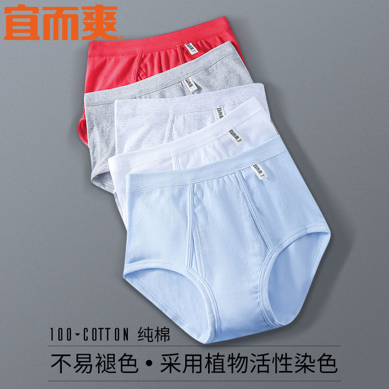 【产品名称:宜而爽内裤男白色高腰爸爸三角裤螺纹大码红色纯棉宽松中老年裤头】