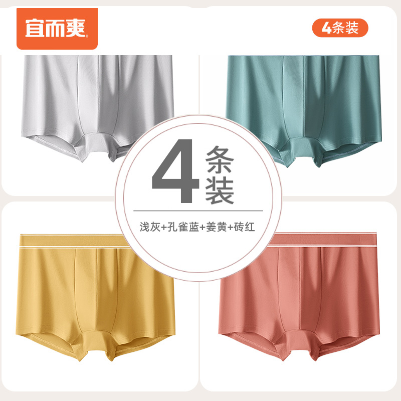 【产品名称:宜而爽2023新款男士内裤5A级抑菌U型双层内裆高弹透气男平角裤】