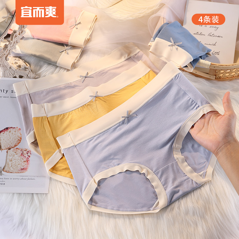 【产品名称:宜而爽新款高弹收腹少女内裤 轻薄透气抑菌内裆中腰女三角裤4条装】