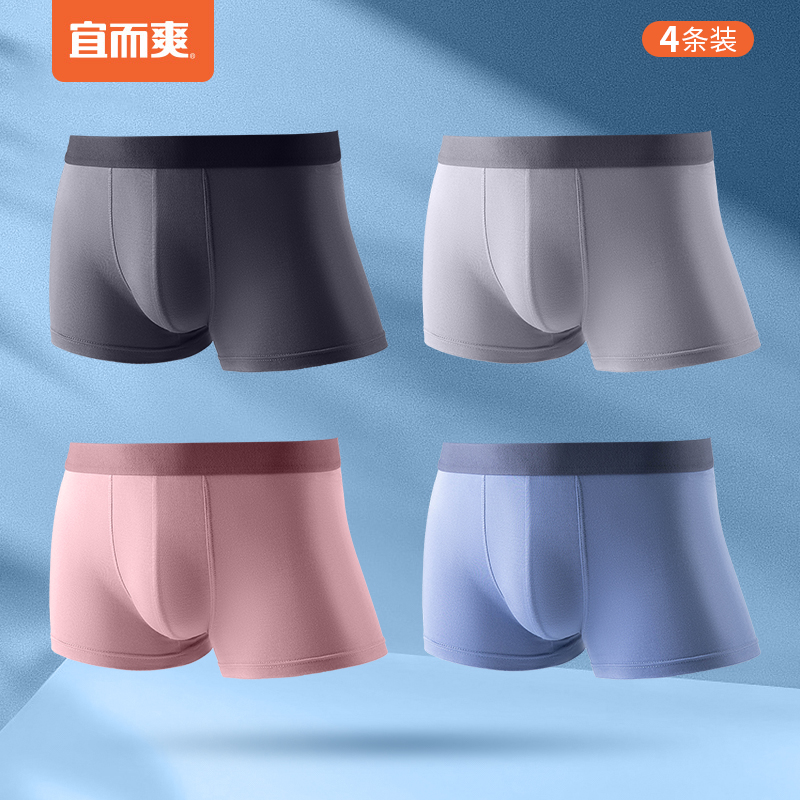 【产品名称:宜而爽男士超薄冰丝内裤高弹舒适抑菌加肥加大200斤男士平角裤】