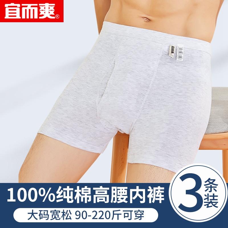 【产品名称:宜而爽内裤男夏纯棉螺纹透气高腰平角裤加肥加大全棉男士四角短裤】