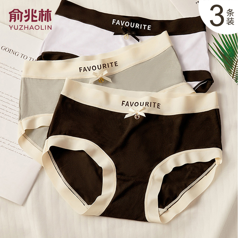 【产品名称:俞兆林女士内裤少女莫代尔全棉抑菌裆透气美式中腰三角裤(3条装)】