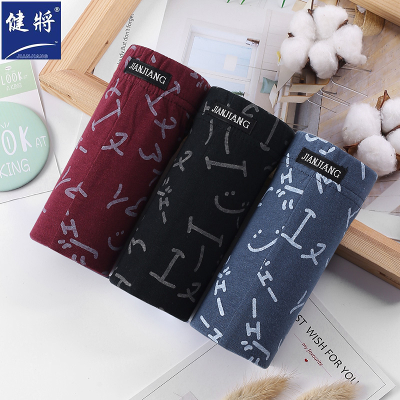 【产品名称:健将男士内裤男100%全棉平角裤透气纯棉四角裤中腰宽松大码短裤头】