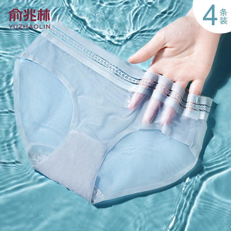 【产品名称:俞兆林女士冰丝内裤夏季中腰无痕凉感轻透全棉底裆内裤(4条装)】