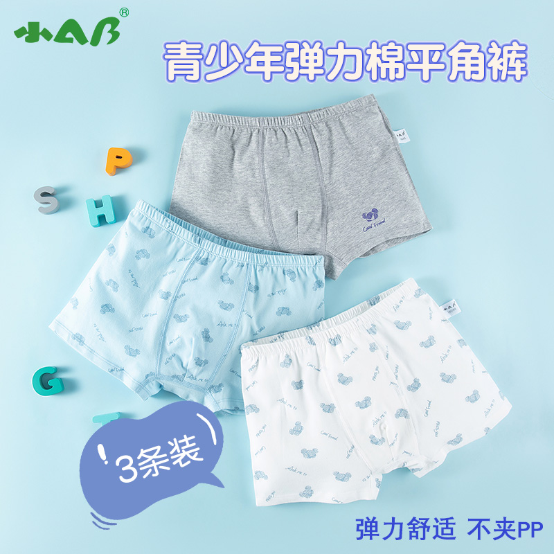 【产品名称:小AB男童内裤A类弹力棉青少年男孩宝宝中大童四角裤头男童平角裤】