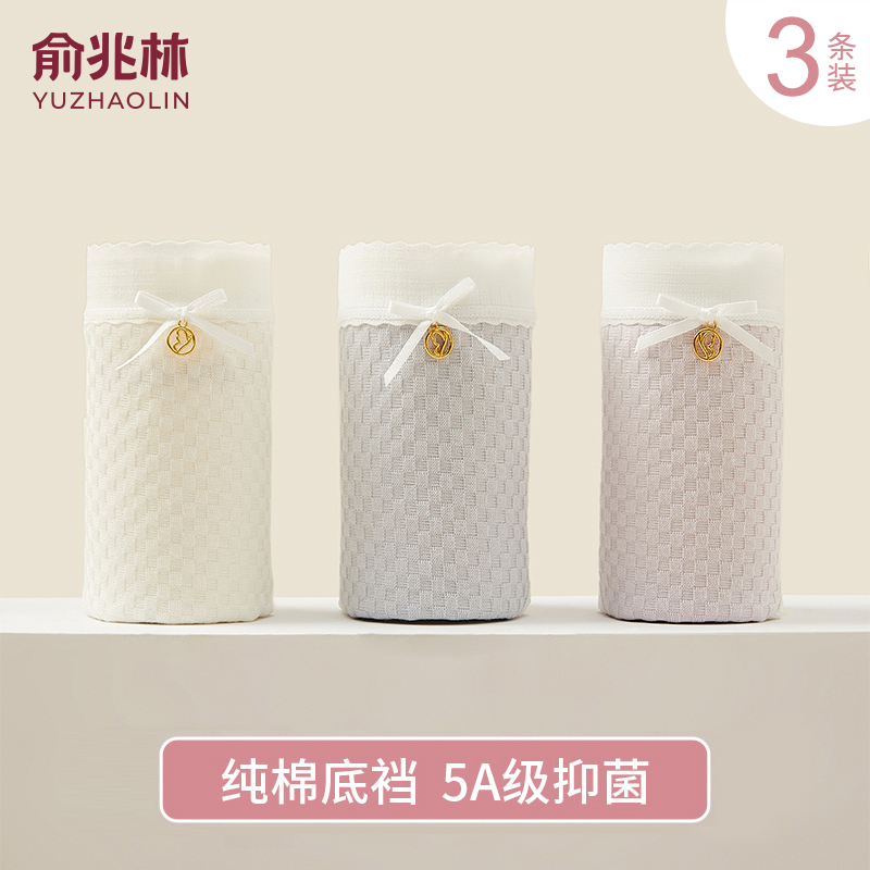 【产品名称:俞兆林女士蝴蝶结内裤5A级抗菌纯棉裆中腰无感透气三角裤(3条装)】