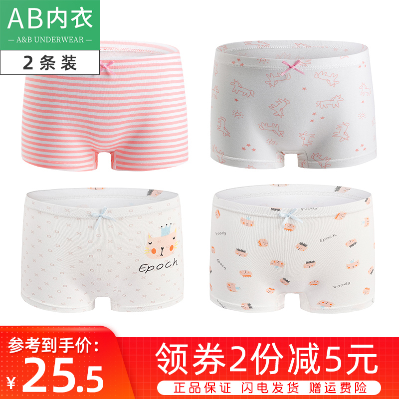 【产品名称:AB儿童内裤女童纯棉莱卡弹力卡通印花平角裤学生少女四角裤头F602】