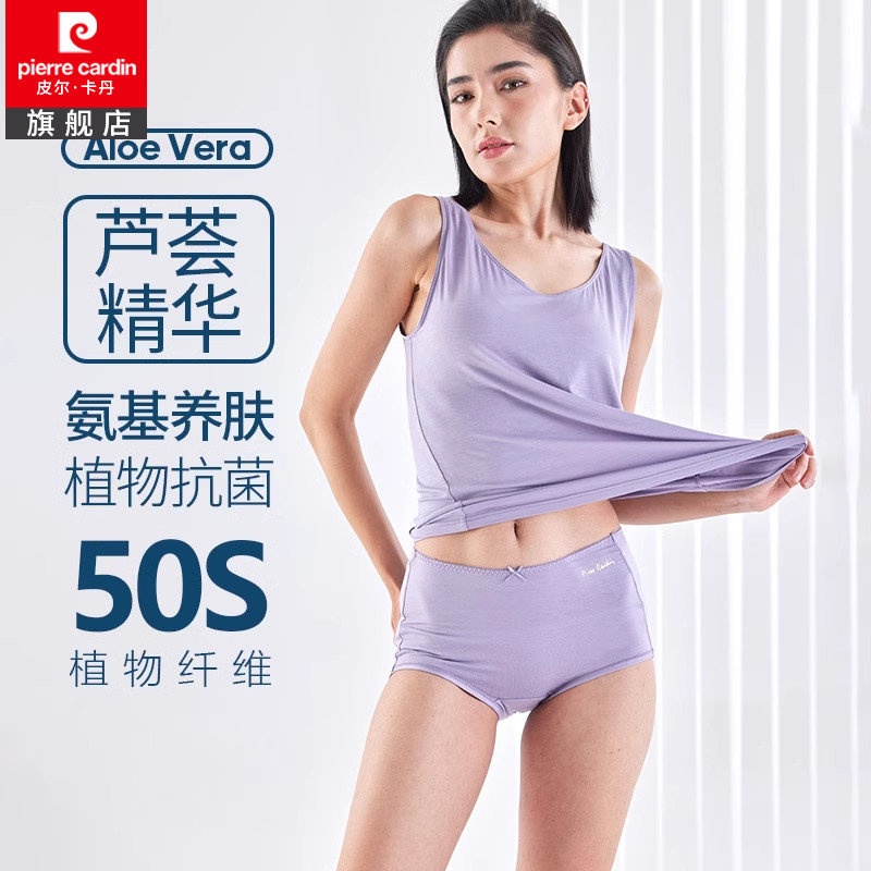 【产品名称:皮尔卡丹女士内裤女纯色抑菌档弹力舒适中腰平角裤WP527119】