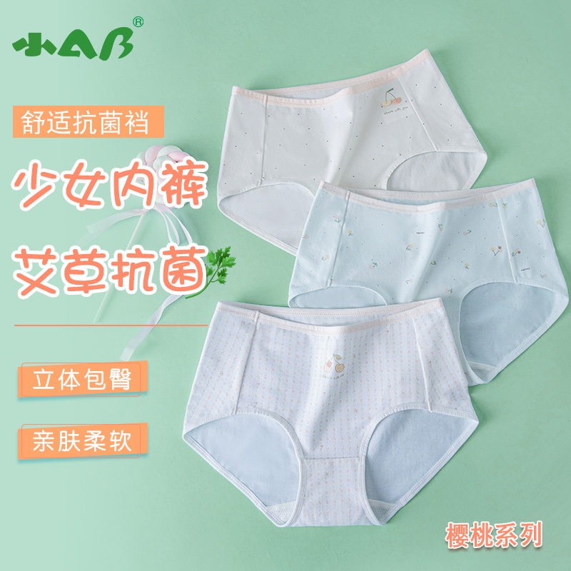 【产品名称:小AB少女内裤纯棉抗菌大童内裤日系小清新中高腰三角内裤纯棉短裤】